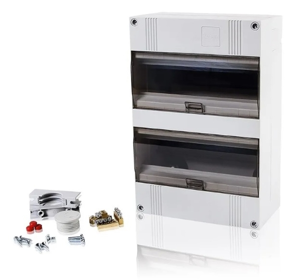 Montagewijze: opbouw, Kleur: grijs, Breedte: 220.0mm, Hoogte: 330.0mm, Diepte: 115.0mm, Ral-nummer: 7035.0, Inbouwdiepte: 0.0mm, 2 rijen, Soort afdekking: deksel, Aanbouwmogelijkheid