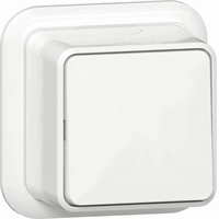 Nom. spanning: 250.0v, Montagewijze: opbouw, Samenstelling: basiselement met bovendeel behuizing, Bedieningswijze: wip/drukker, Kleur: wit, Met montageplaat, Aansluitwijze: steekklem, Verlichting: optioneel, Nom. (meet)stroom: 10.0a, Materiaalkwaliteit: duroplast
