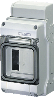Verdeelkasten uit hoogwaardig thermoplast. Voor opbouwtoepassingen in gebouwen of beschermde buitenopstelling. Automatenkast, met 3 modulen, voor de inbouw van apparaten met klikbevestiging op DIN-rail. Kabelinvoer via geïntegreerde elastische afdichtmembr